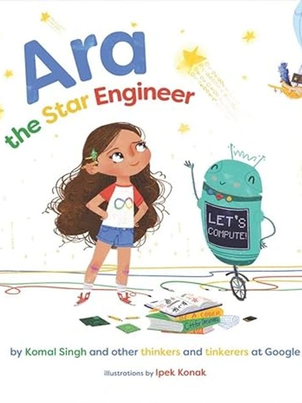 Ara is a young girl who loves BIG numbers. She wants to count all the stars in the sky… but how? This is an upbeat adventure of Ara and her sidekick droid, DeeDee (“Beep!”). They use smarts and grit to solve a BIG problem and discover an amazing algorithm! A quest that takes them through a whirlwind of intriguing locations at Innovation Plex -- Data Centre, Ideas Lab, Coding Pods, and X-Space. Along the way, they encounter real-life women tech trailblazers of diverse backgrounds, including a Tenacious Troubleshooter, an Intrepid Innovator, a Code Commander, and a Prolific Problem Solver. They tinker-and-tailor, build-and-fail, launch-and-iterate, and in the end discover an amazing algorithm of success -- coding, courage, creativity, and collaboration (“Beeeeep!”).