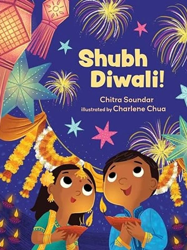 Diwali has arrived! Rangoli art decorates the floor, and strings of flowers hang around the doors. Now it's time to ring the bells, light the lamps, and welcome the New Year with family and friends. A sweet introduction to the Hindu festival of lights.