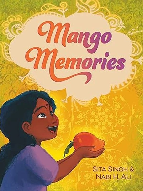 Her brother shares a memory about his first time mango picking: his father holding him steady as he reached high above for the fruit. But when the girl climbs the tree, she becomes too dizzy. Then her grandma shares a mango memory: learning, many years ago, to toss a stone that knocked the fruit from the branches. But when the girl throws her stone, she keeps missing.