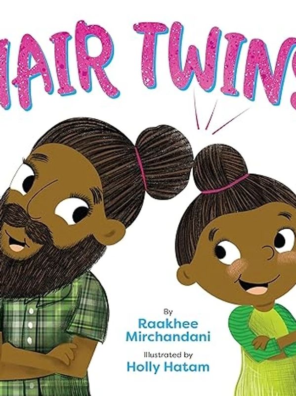 Every morning Papa combs through his daughter's waves like he does his own—parting it down the middle, using coconut oil to get all the tangles out. Some days he braids her hair in two twists down the side of her face. Other days he weaves it into one long braid hanging down her back, just like a unicorn tail. But her favorite style is when he combs her hair in a tight bun on the top of her head, just like the joora he wears every day under his turban. They call this their hair twin look!